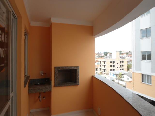 Excelente Apartamento de 2 quartos sendo 1 suíte, sala, sacada com churrasqueira e pia, cozinha e área de serviço conjugadas, espera para Split, banheiro social e garagem privativa.