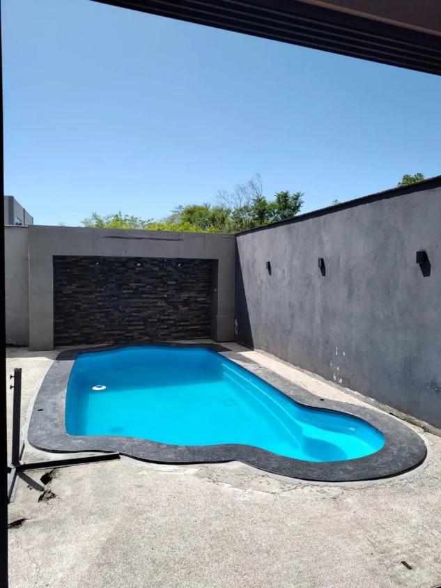 Área de lazer no piso inferior com piscina 6,5 x 3,5 m