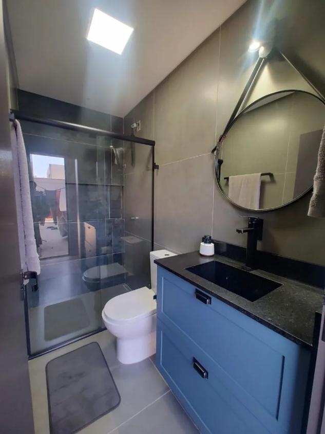 Casa superior (alto padrão) por concluir: cozinha, sala de jantar e sala de estar integrados, lavanderia, despensa, lavabo, escritório, BWC social, 2 quartos, suíte master com BWC (3,5 x 3) e closet